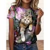 Женская футболка с 3D-принтом животного кошки, летняя футболка с коротким рукавом и милым животным, футболка Y2k Harajuku с круглым вырезом, женский пуловер