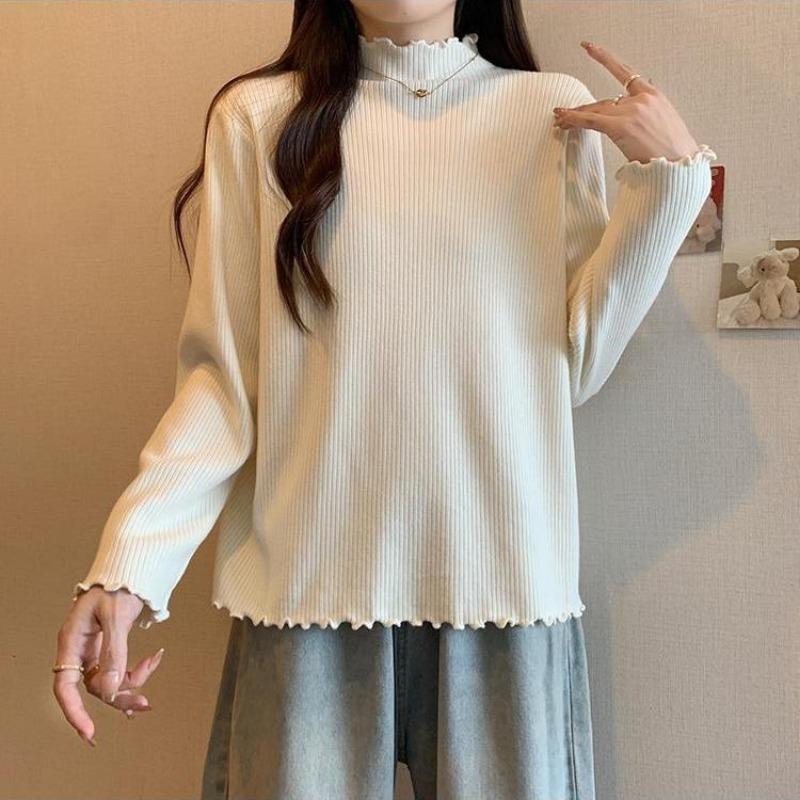 Нижнее белье Женская Осень и Зима Новый Стиль Немецкий Вельвет Теплая Рубашка с Воланами с Полувысоким Воротником Свободный Топ с Длинным Рукавом