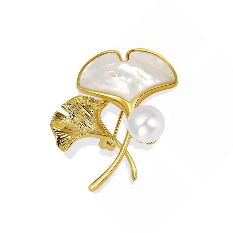 Модная и нишевая брошь в виде листа гинкго, высококлассная женственная брошь с жемчугом, застежка против раскрытия