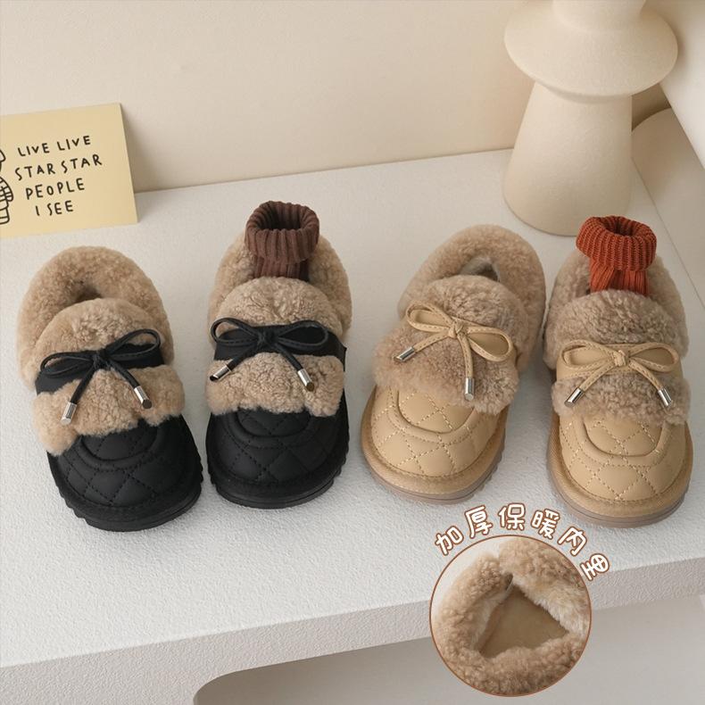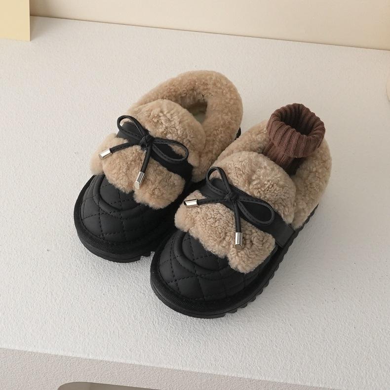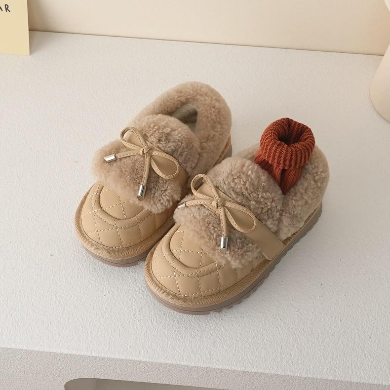 Девочки хлопковые туфли [милые и симпатичные] 22 зимние толстые бархатные детские сапоги для снега с низким верхом и низким голенищем, милые, в стиле колледжа