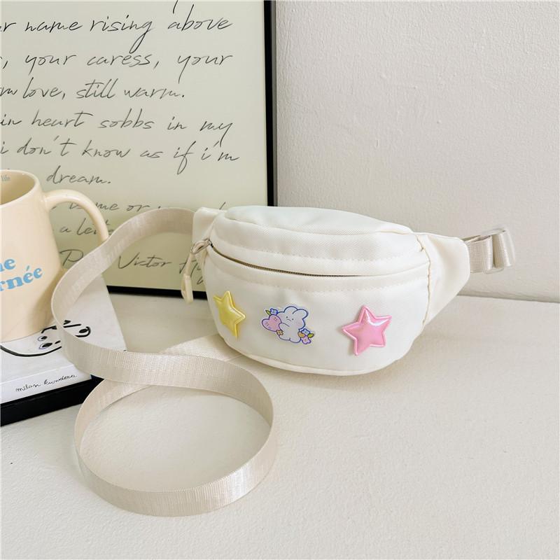 This children's casual crossbody bag features a soft, lightweight nylon construction with a polyester lining, measuring approximately 21*6*10 cm. Designed with playful cartoon bunny patterns, it offers secure storage for small essentials. Ideal for daily outings and school activities, it supports easy organization for young girls. Wipe clean with a damp cloth to maintain its bright colors and charming appearance.