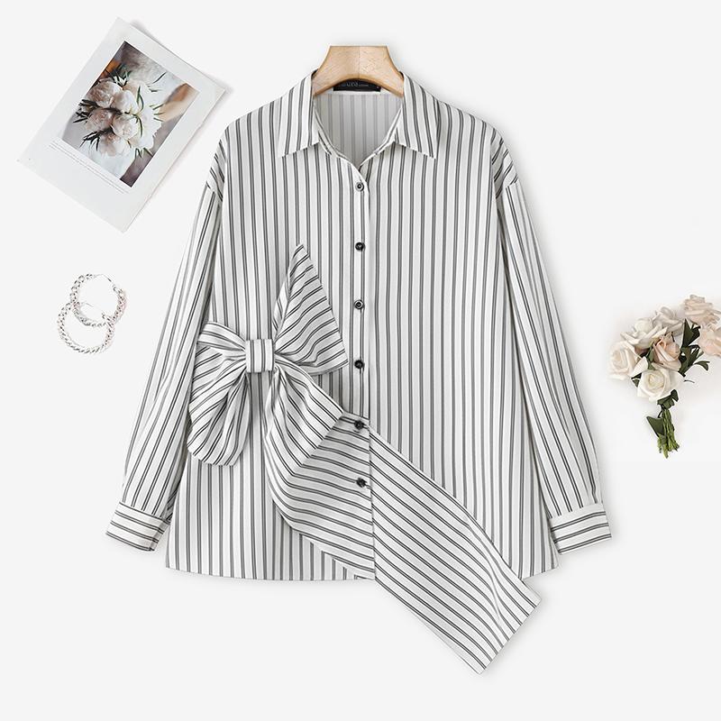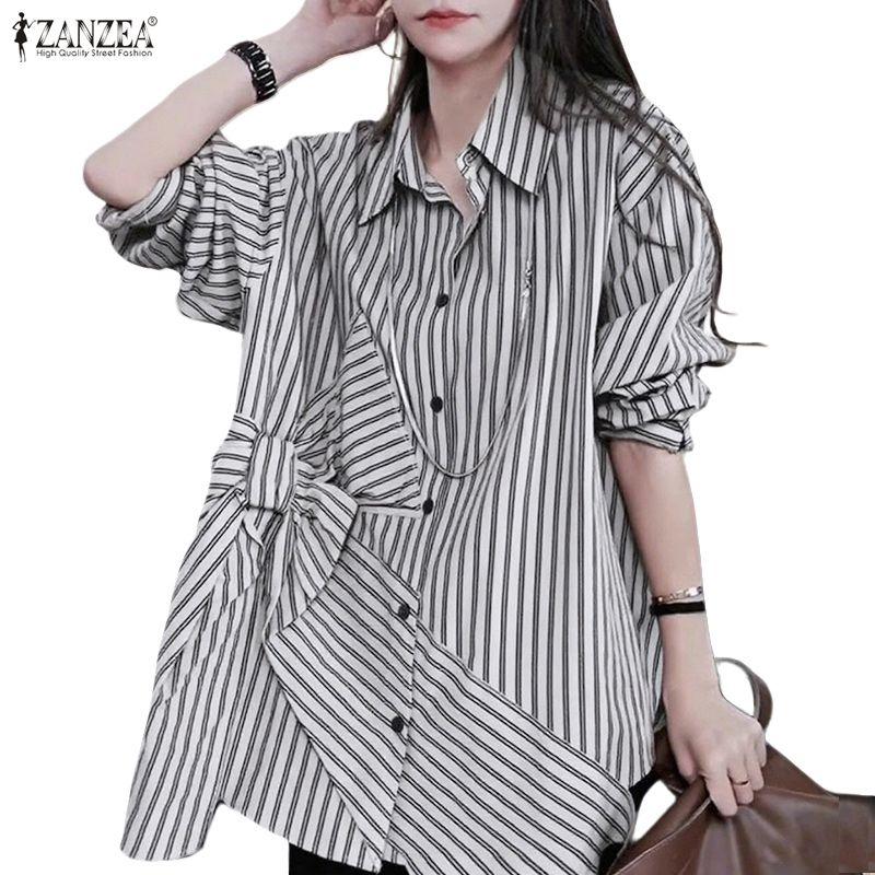 ZANZEA Женская повседневная блузка в полоску с отложным воротником и длинным рукавом