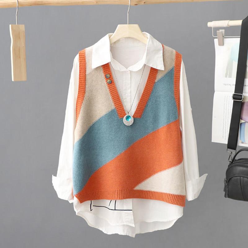 Весна Осень Вязаный Жилет Майка Свободный Свитер Пальто Вязаная Рубашка Женская Одежда