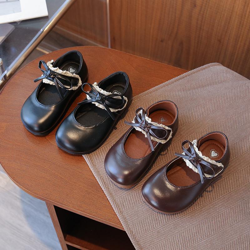 Туфли принцессы для девочек кожаные туфли 2025 новые детские туфли Мэри Джейн зарубежный стиль черные для маленькой девочки красивые детские туфли