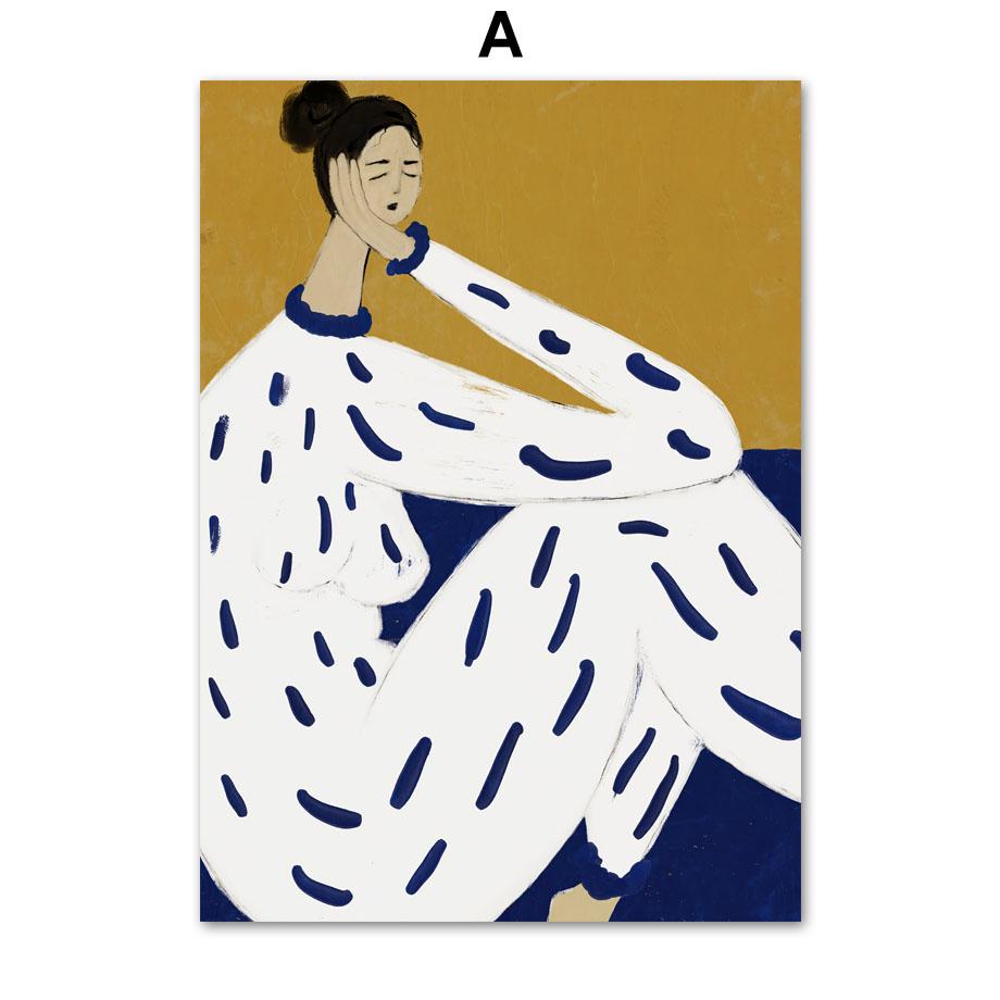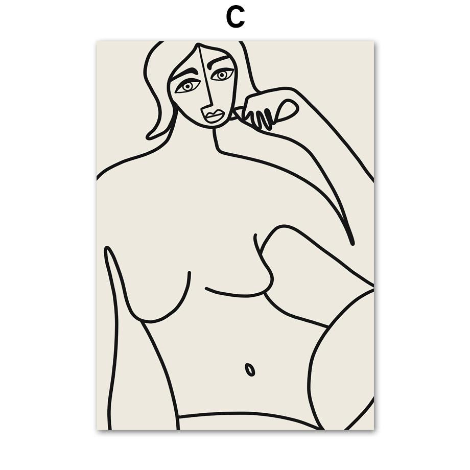 Абстрактная полосатая девушка линия тело ваза настенное искусство холст живопись постеры и принты отель бар настенные картины для декора гостиной