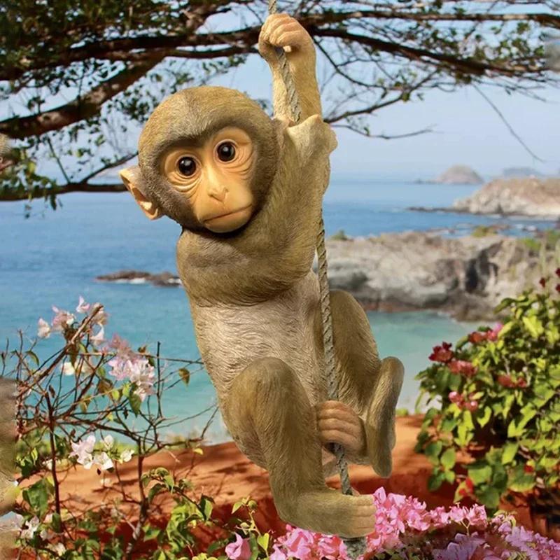 Садовое животное, подвесная обезьянка, дерево, лазающее, смоляные поделки, статуэтка, украшение для дома, аксессуары, садовое зеленое растение, смоляная подвеска