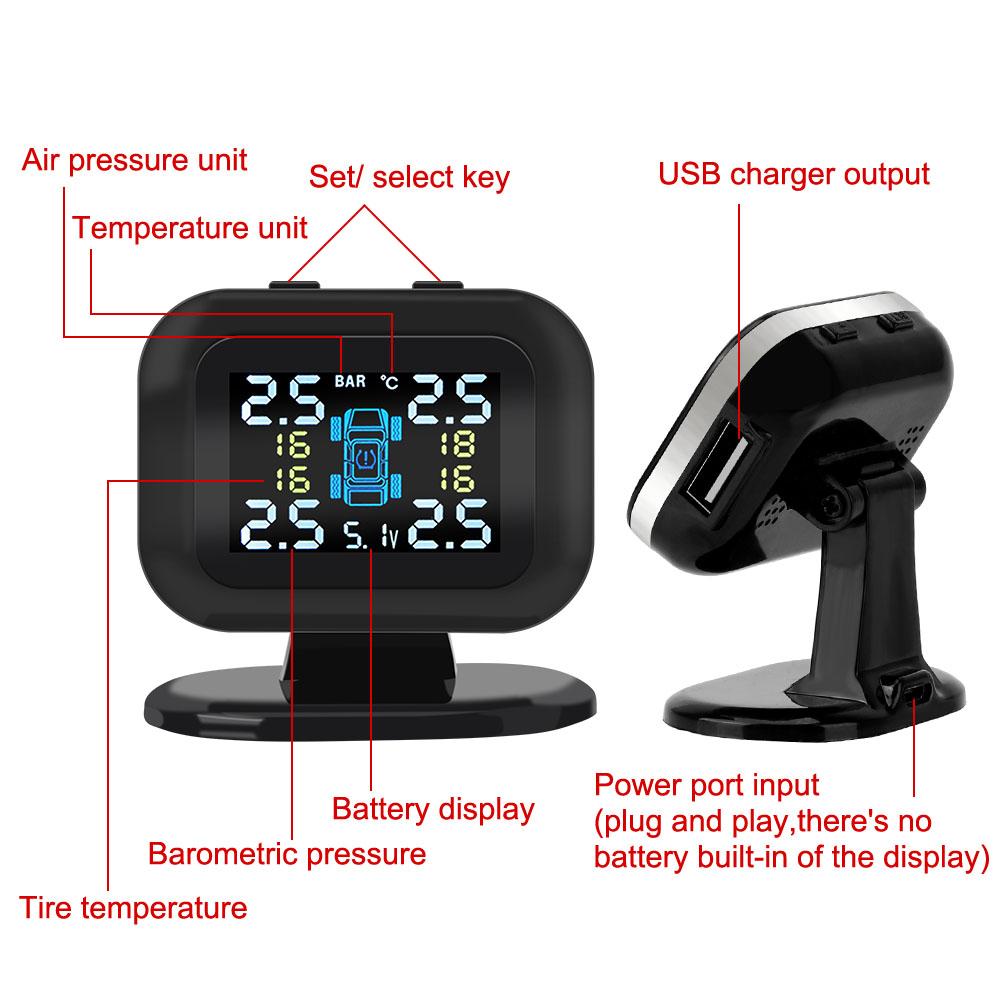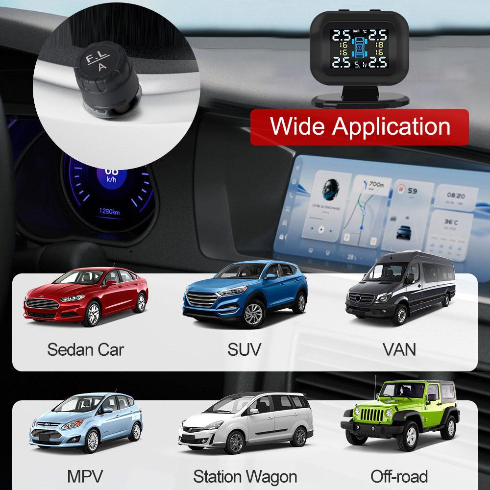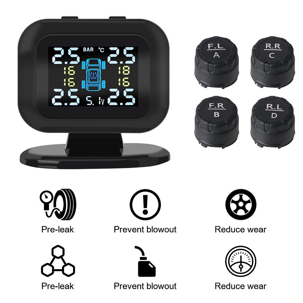 Mini Car Tire Pressure Monitoring System Wireless Auto Security Alarm Systems With 4 Pcs External Sensor