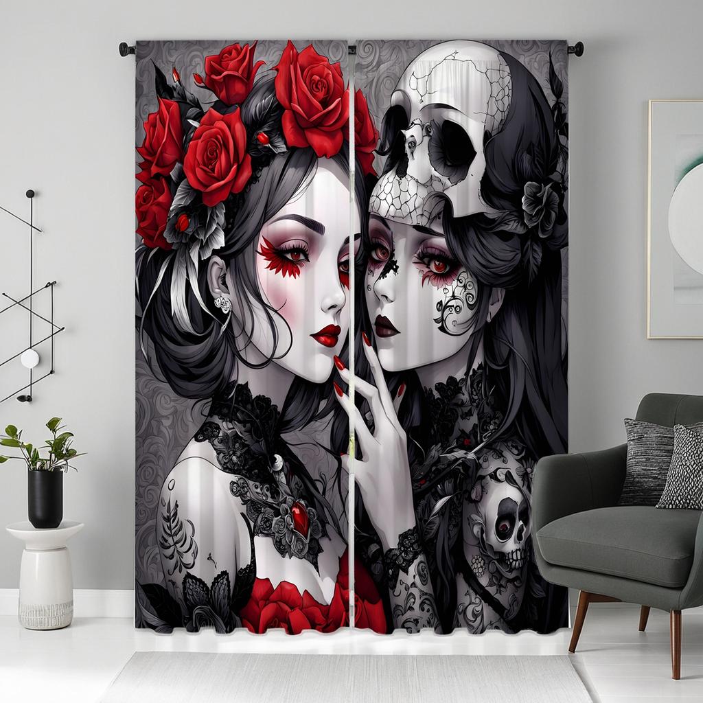 2 шт. HD Призрачный красный глаз Череп красота декоративная занавеска черный галстук цифровая печать занавеска украшение для дома стиль украшения