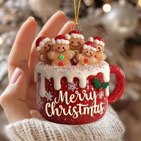 Внутри пять милых кукол-пряничных человечков в рождественских шапках создают теплую и игривую атмосферу в вашем пространстве.. Красная чашка украшена разноцветными сахарными частицами и словами «С Рождеством», что делает ее уникальным праздничным украшением.