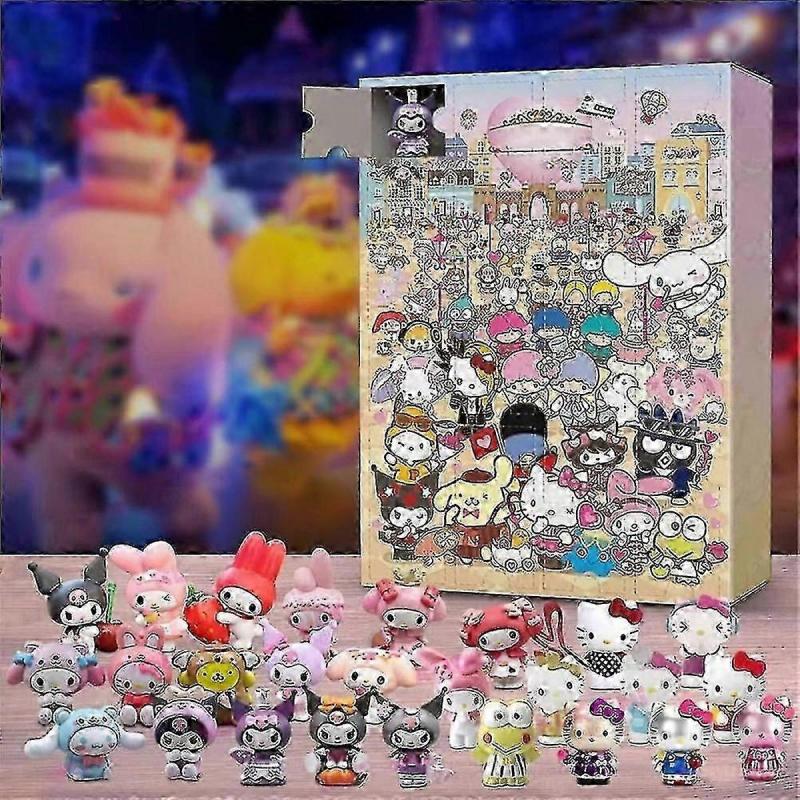 Рождественский адвент-календарь Sanrio 2025 24 шт. Фигурки Sanrio Куклы Игрушки Рождество 24 дня Обратный отсчет Календарь Наполнитель для чулка Коробка Подарок