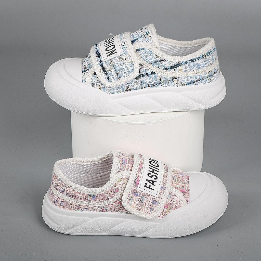 Фабрика рекомендует парусиновые туфли в иностранном стиле для девочек, новые модные плоские подошвы, повседневные туфли на липучках для детей среднего и старшего возраста