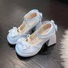 Японские синие туфли с бантом на высоком каблуке водонепроницаемые стол милые мягкие сестра лолита дети толстый каблук толстая подошва ткань