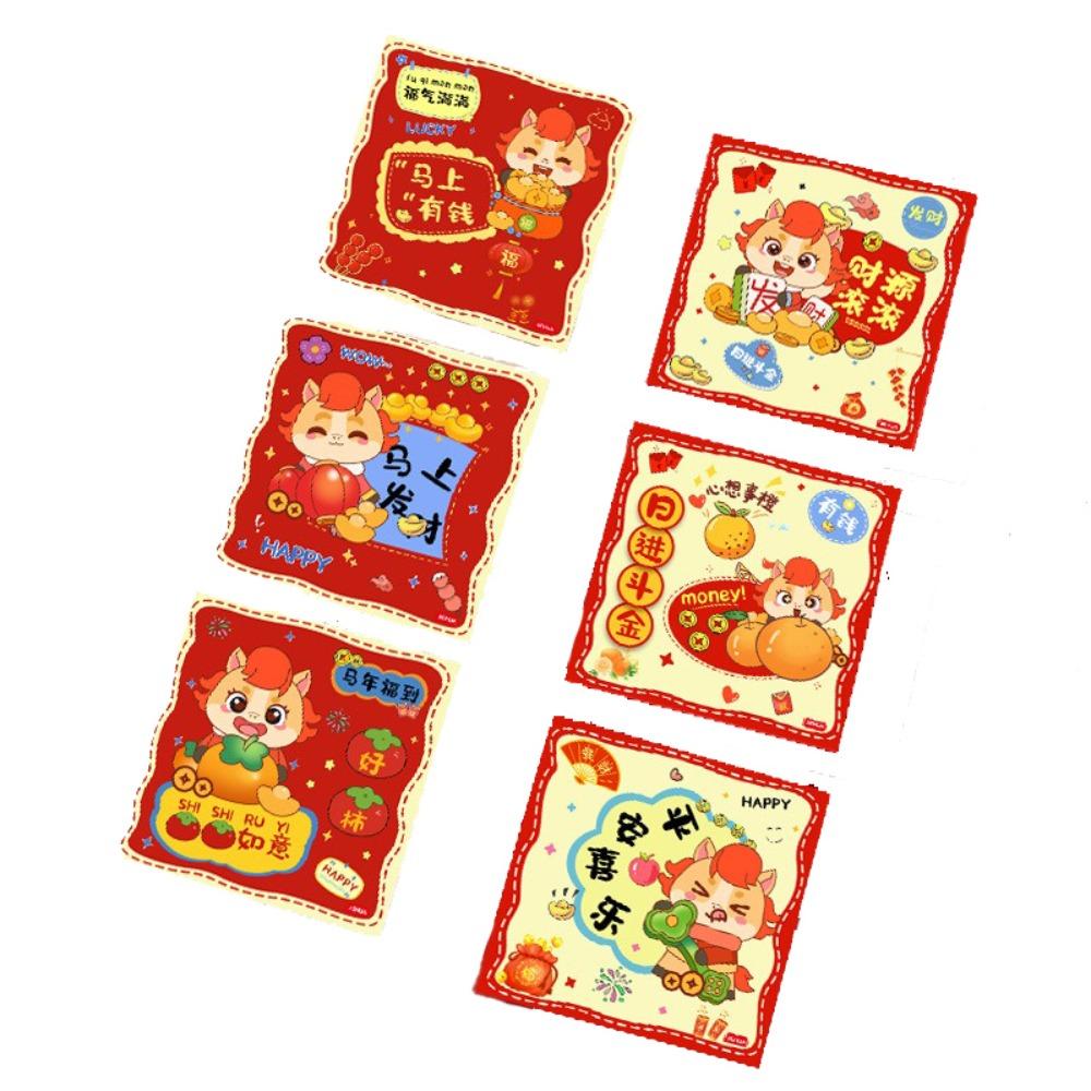 6pcs Traditional Red Envelopes Cartoon Money Bags Cash Gift Package New Year Celebration
