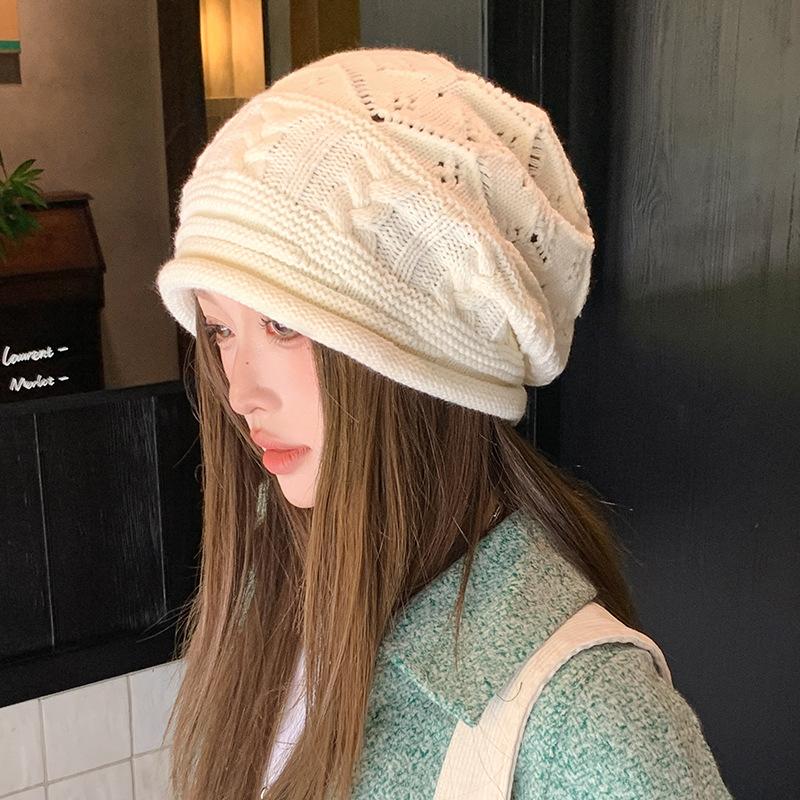 Вязаная шапка Баотоу с подворотом Женская осенне-зимняя большого размера Теплая с защитой ушей Шапка-бини Маленькая шерстяная шапка, открывающая лицо