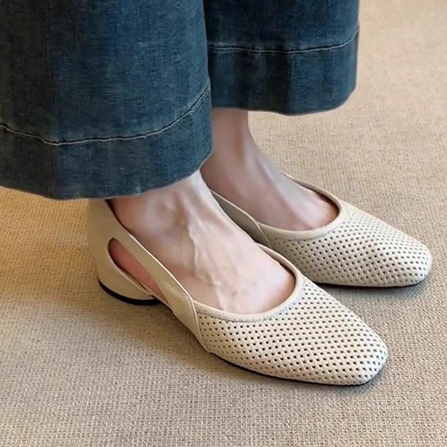 Super soft leather~ French cool single shoes women's square head hollow hole shoes retro shallow mouth hollow breathable Mary Jane shoes