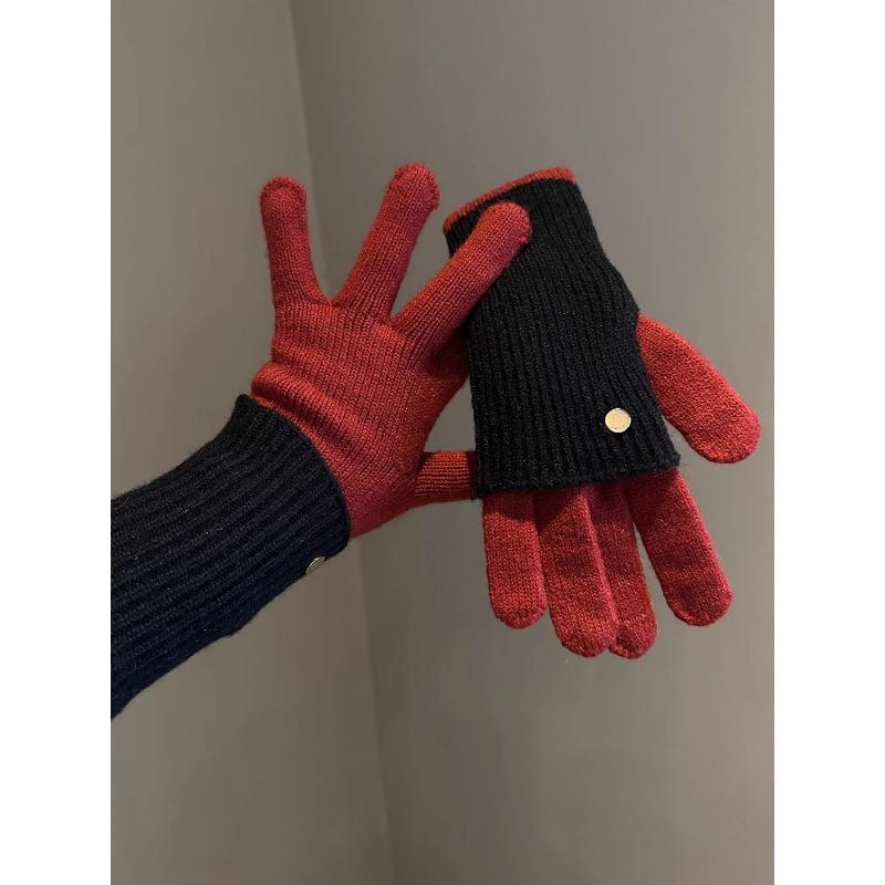 Зимние вязаные шерстяные перчатки Maillard двойного назначения с цветными блоками для женских шерстяных перчаток без пальцев с сенсорным экраном, теплые, для велоспорта, для студентов