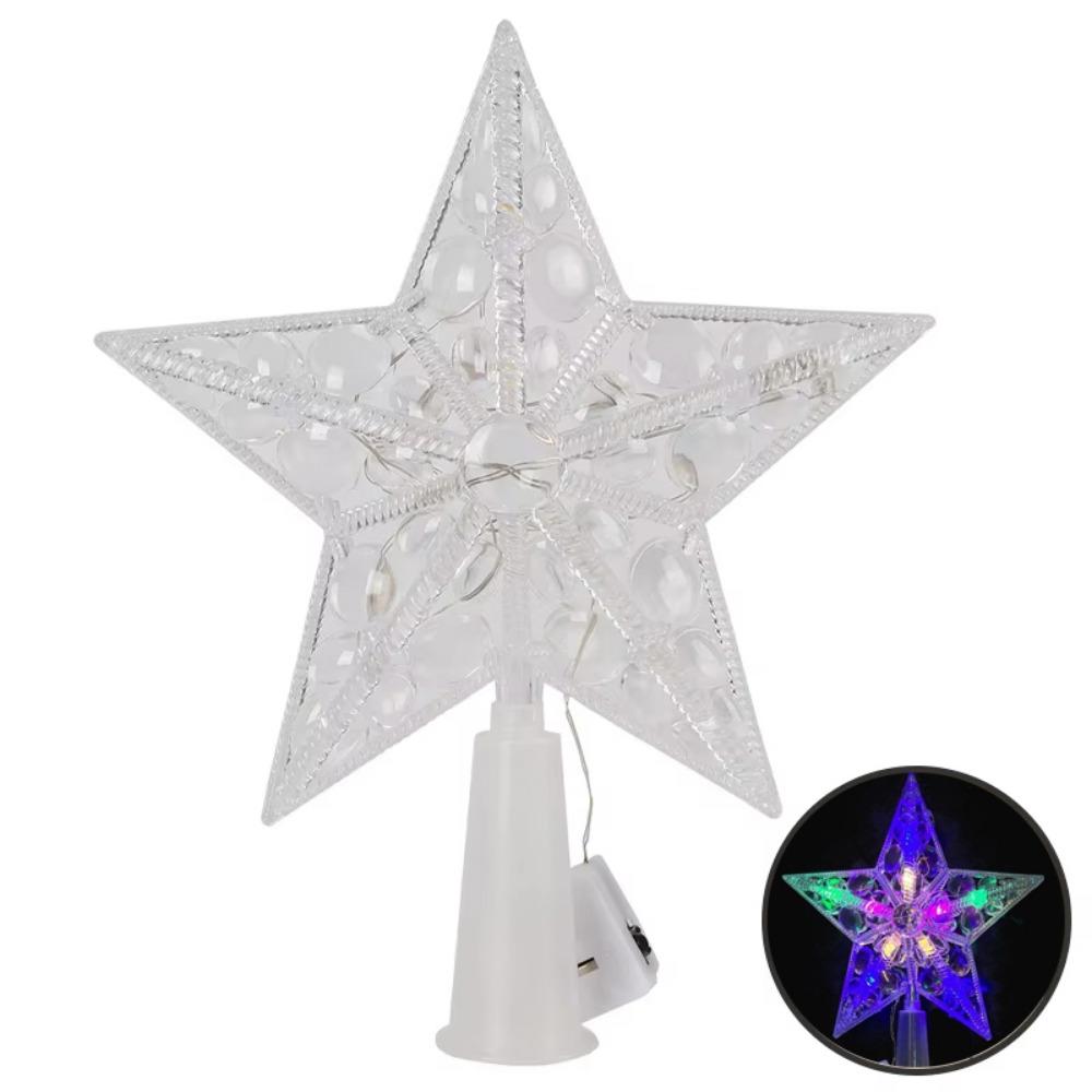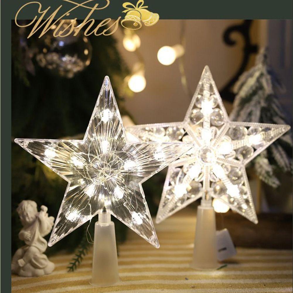 Прозрачные Рождественские Звезды Верхушки для Елки Светящиеся Рождественские Верхушки для Елки Рождественские Световые Украшения Дом