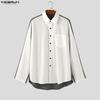 INCERUN Мужские рубашки оверсайз с длинным рукавом, пэчворком на спине и пуговицами, повседневные, свободные, топы