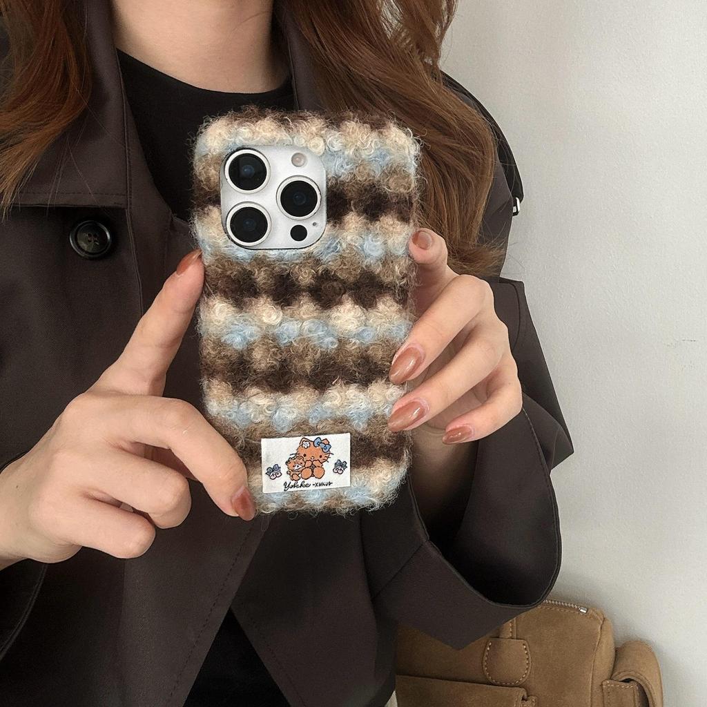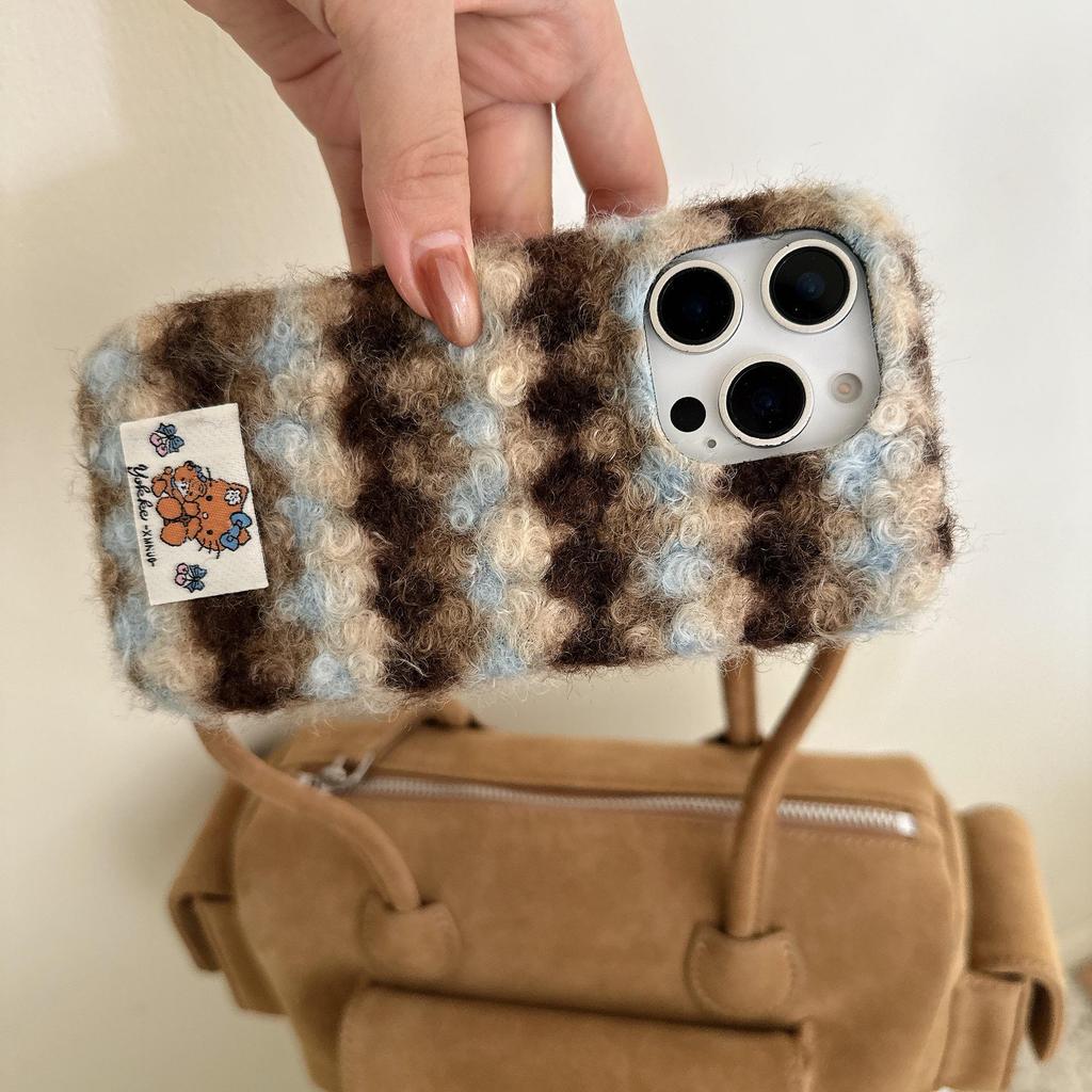Клетчатый шерстяной чехол в британском стиле для Apple iPhone 16/15/14/13/17 Pro Max - Полная защита, Ударопрочный, для Осени и Зимы