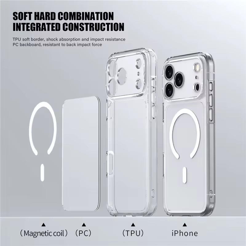 Роскошный прозрачный противоударный магнитный чехол Magsafe для iPhone 17 Air 17Pro 17 Pro Max, беспроводная зарядка, противоударная жесткая задняя крышка