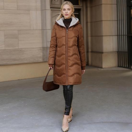 Практичный дизайн: Оцените удобство гладких молний и функциональных карманов на этой женской хлопковой куртке. Легко храните необходимые вещи и наслаждайтесь удобством ношения. Капюшон добавляет дополнительное тепло в прохладные дни.