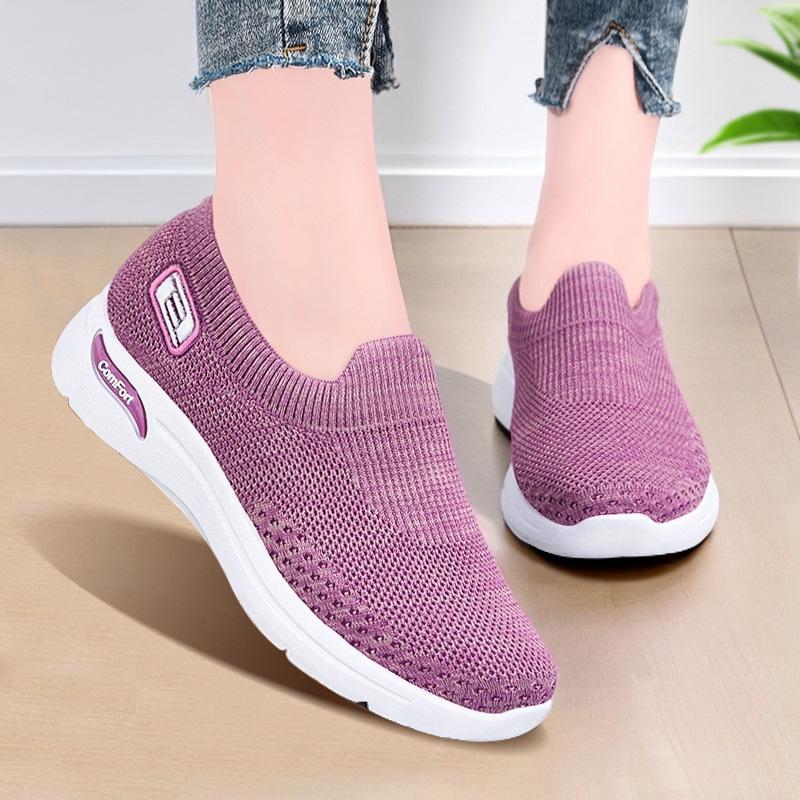 Обувь для женщин Весна Новая ткань Обувь для внешней торговли Женская обувь Повседневная обувь для мам Летающие носки Кроссовки на танкетке с мягкой подошвой