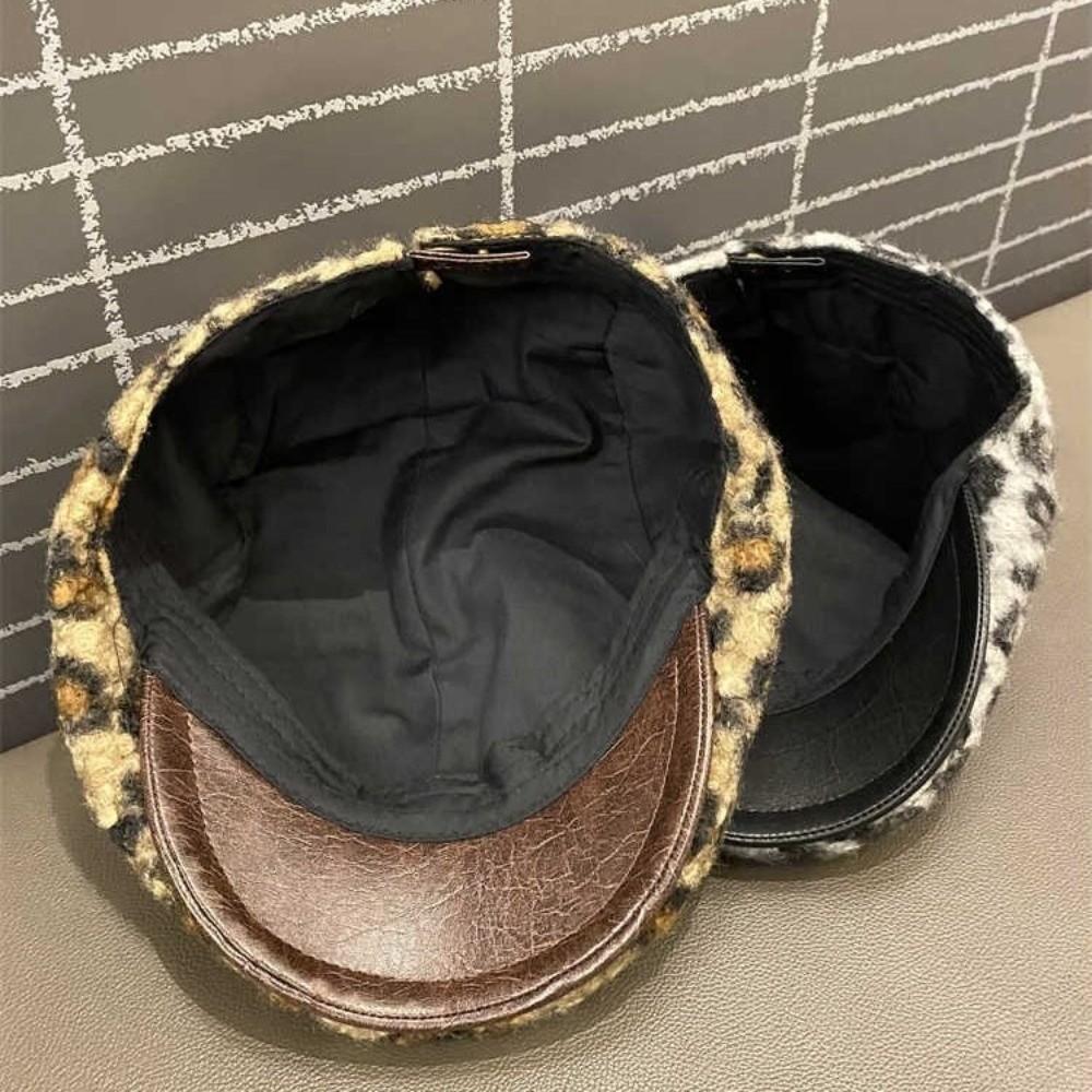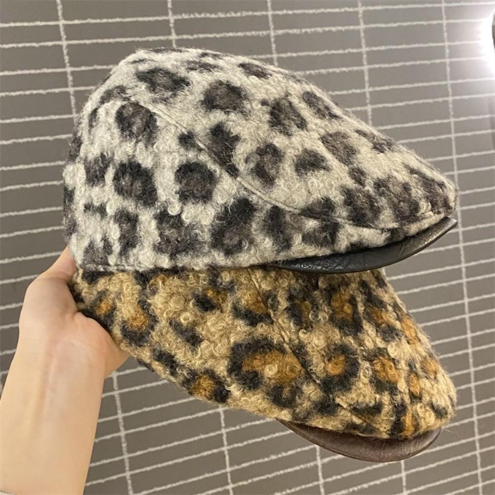 Keep Warm Leopard Print Berets Adjustable Women Newsboy Caps Fashion Lamb Wool Berets Hat Girl