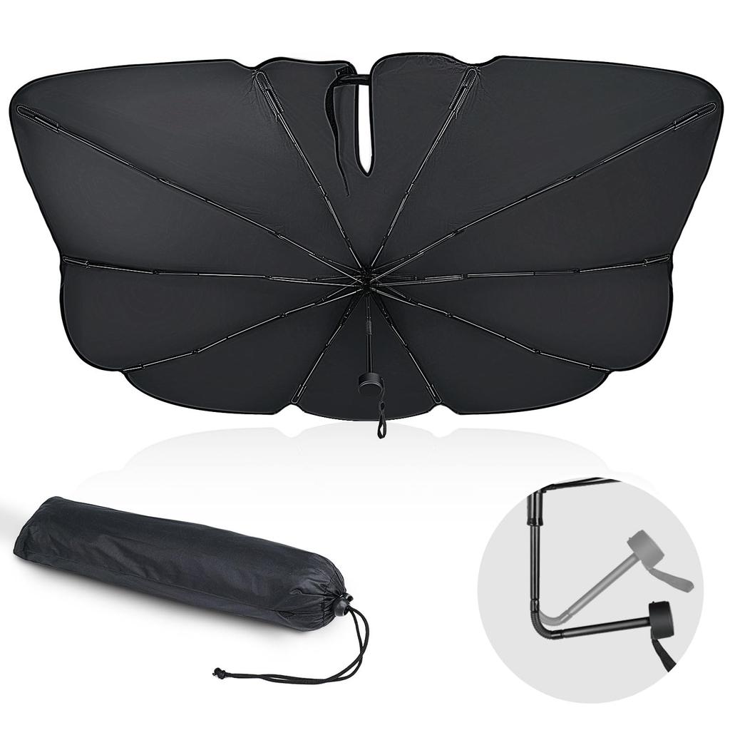 Дизайн в форме зонтика делает установку легкой! Этот автомобильный солнцезащитный козырек имеет уникальную форму зонта и выпускается в трех размерах, от малого до большого, чтобы подходить для широкого спектра транспортных средств, от компактных автомобилей до внедорожников.. Специальные поликарбонатные ребра изгибаются до 180°, чтобы соответствовать любой приборной панели. Блокировка более 99,9% УФ-лучей снижает повреждения, вызванные экстремальной жарой, а прочный стекловолоконный каркас и защитный чехол обеспечивают отличную защиту для салона вашего автомобиля.. Установка занимает всего 4,8 секунды. Этот летний предмет первой необходимости обеспечивает комфортную поездку. Меры предосторожности при использовании: - После сгибания спиц аккуратно поместите зонт в машину.. - Пожалуйста, обращайтесь осторожно, так как слишком сильное нажатие или чрезмерное усилие может поцарапать внутреннюю часть.