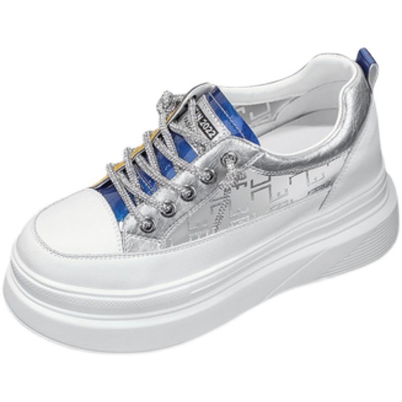 Белые туфли на платформе 2025 лето новинка с увеличением внутренней высоты женская обувь сетчатые туфли-маффины студенческие на шнуровке дышащие спортивные туфли