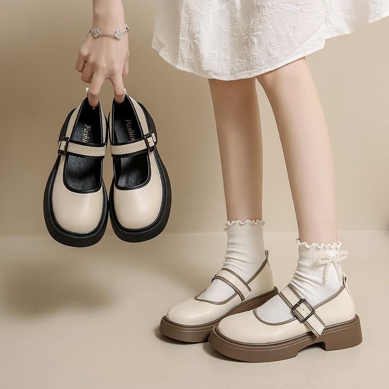 College style Mary Jane women's shoes spring and autumn 2025 new versatile round head shallow mouth single shoes thick heel small leather shoes