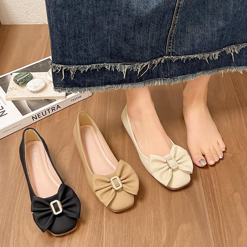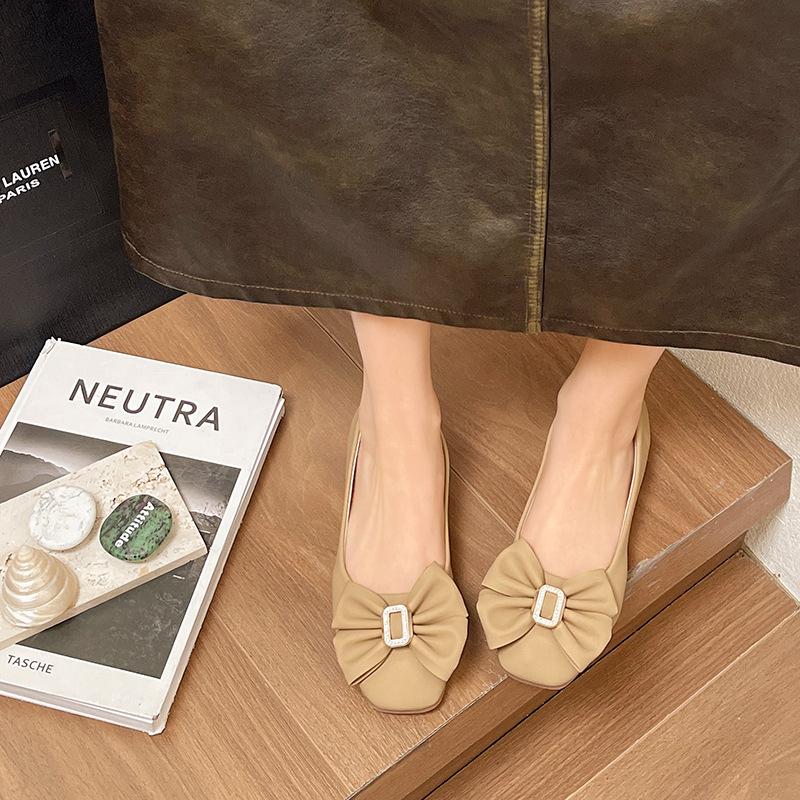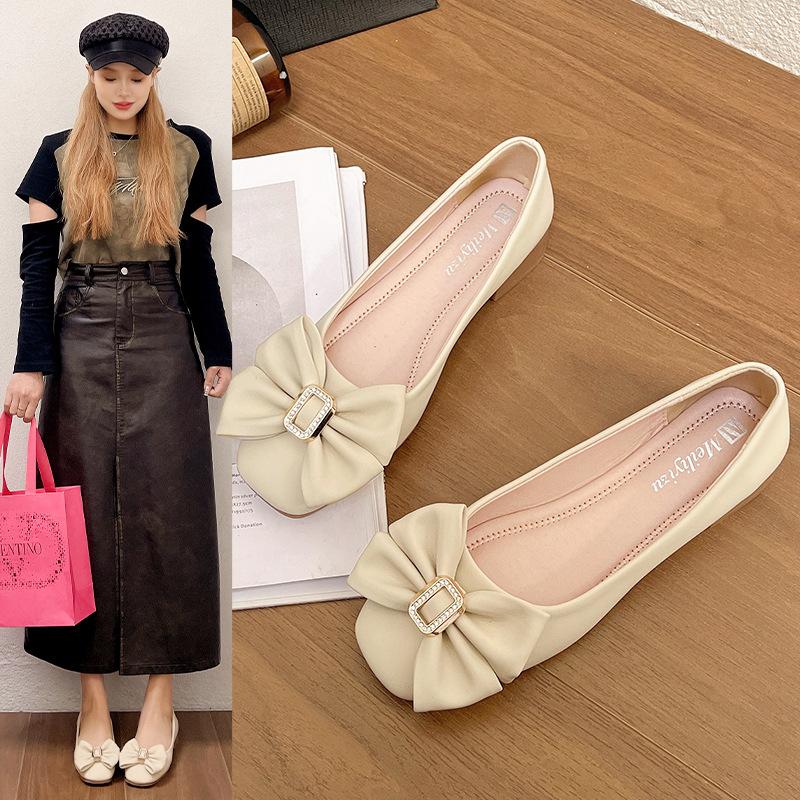 Французские вечерние туфли-лодочки женские на толстом каблуке, с мягкой подошвой, новые летние, универсальные, с бантом, с открытым вырезом, нежные, туфли Дуду
