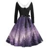 Женская мода с v-образным вырезом, повседневные тонкие рождественские платья с воротником из волос и длинными рукавами с принтом