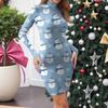 Женское повседневное платье с высоким воротом, длинными рукавами, принтом и облегающего кроя