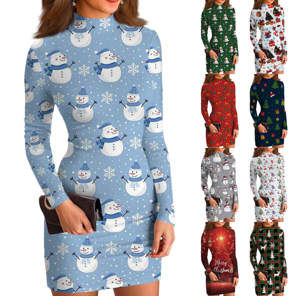 Женское повседневное платье с высоким воротом, длинными рукавами, принтом и облегающего кроя — купить товар онлайн с бесплатной доставкой по всему миру!