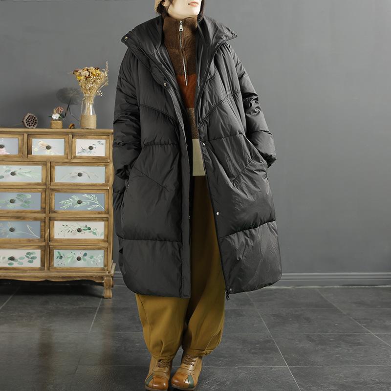 Зимняя черная парка с капюшоном, пуховик женский, свободный оверсайз, толстый, теплый, с карманами, дутый, женское длинное пальто