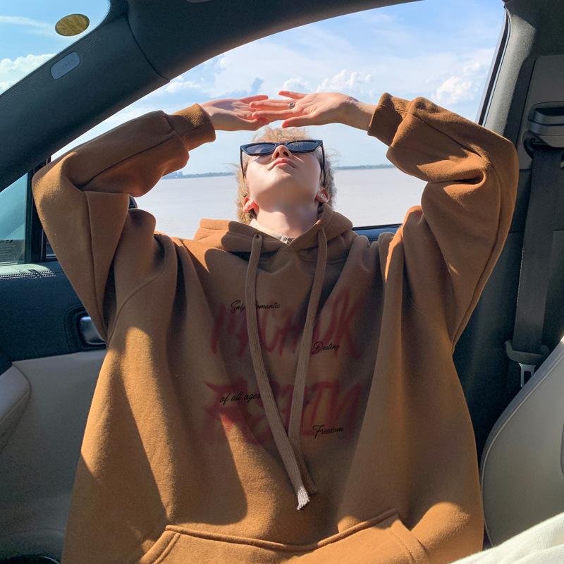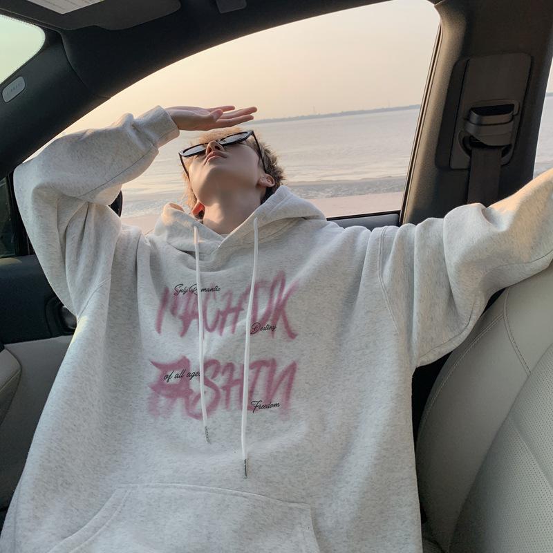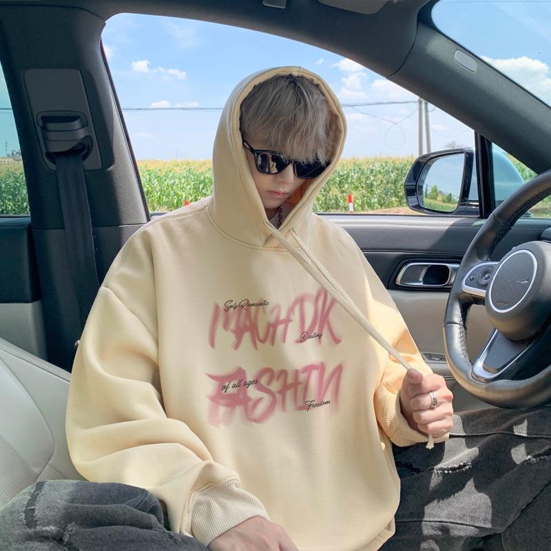 Men's Sweatshirt Hooded Autumn and Winter Handsome Youth Printed Jacket Loose Boys' Tops