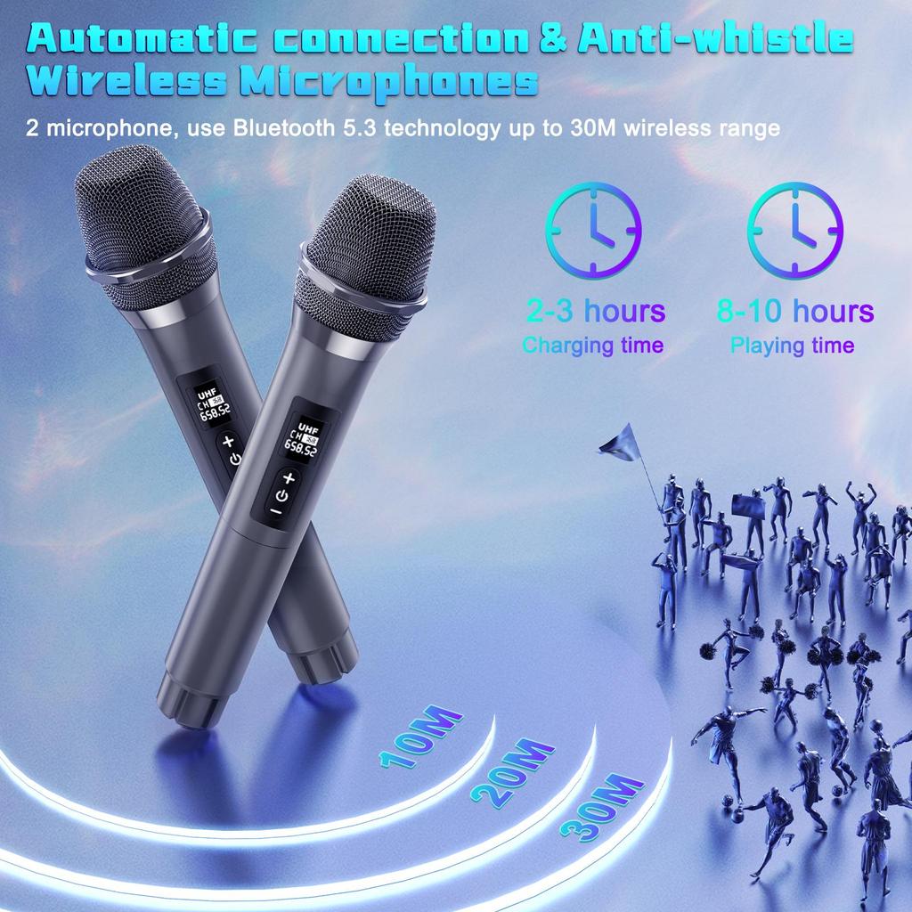 Караоке-машина FanFun, портативная Bluetooth-колонка с 2 микрофонами, RGB-подсветка для вечеринок, пульт дистанционного управления, T10-T