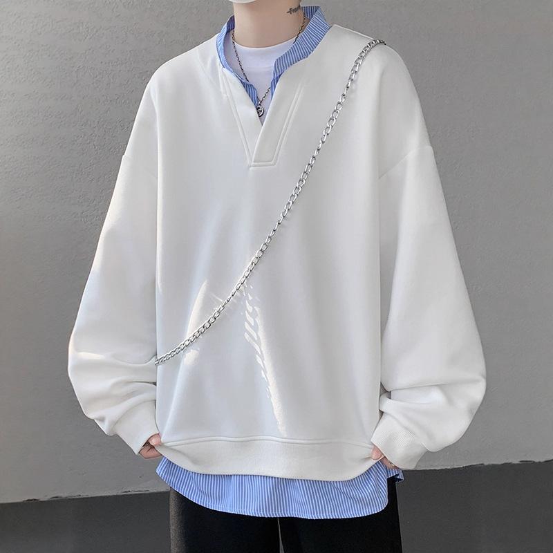 Мужской осенний свитер с V-образным вырезом, имитирующий двойку, свободного кроя, большого размера, куртка в университетском стиле — купить товар онлайн с бесплатной доставкой по всему миру!