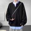 Мужской осенний свитер с V-образным вырезом, имитирующий двойку, свободного кроя, большого размера, куртка в университетском стиле