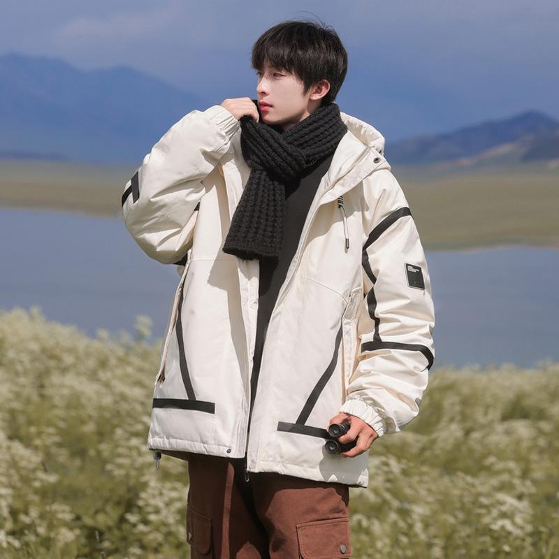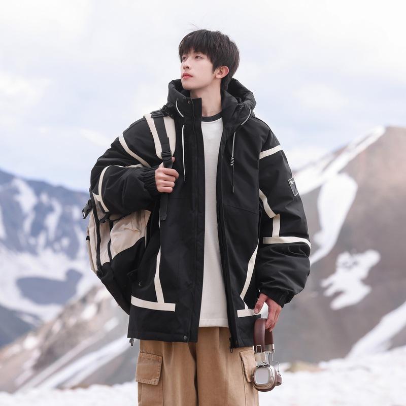 Осень и Зима Повседневная Пара Зимняя Новая Модель Пуховик Свободный Уличный С Капюшоном Мужской