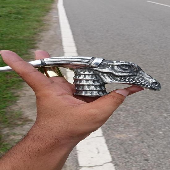 Эта рукоять трости в виде головы дракона является прекрасным примером детализированного металлического искусства и традиционного мастерства.. Ручка полностью изготовлена вручную из высококачественной латуни, что обеспечивает долговечность, прочность и роскошную антикварную отделку.. Дизайн головы дракона отличается сложной детализацией — от чешуи до выразительных глаз — символизируя силу, мудрость и защиту во многих культурах.