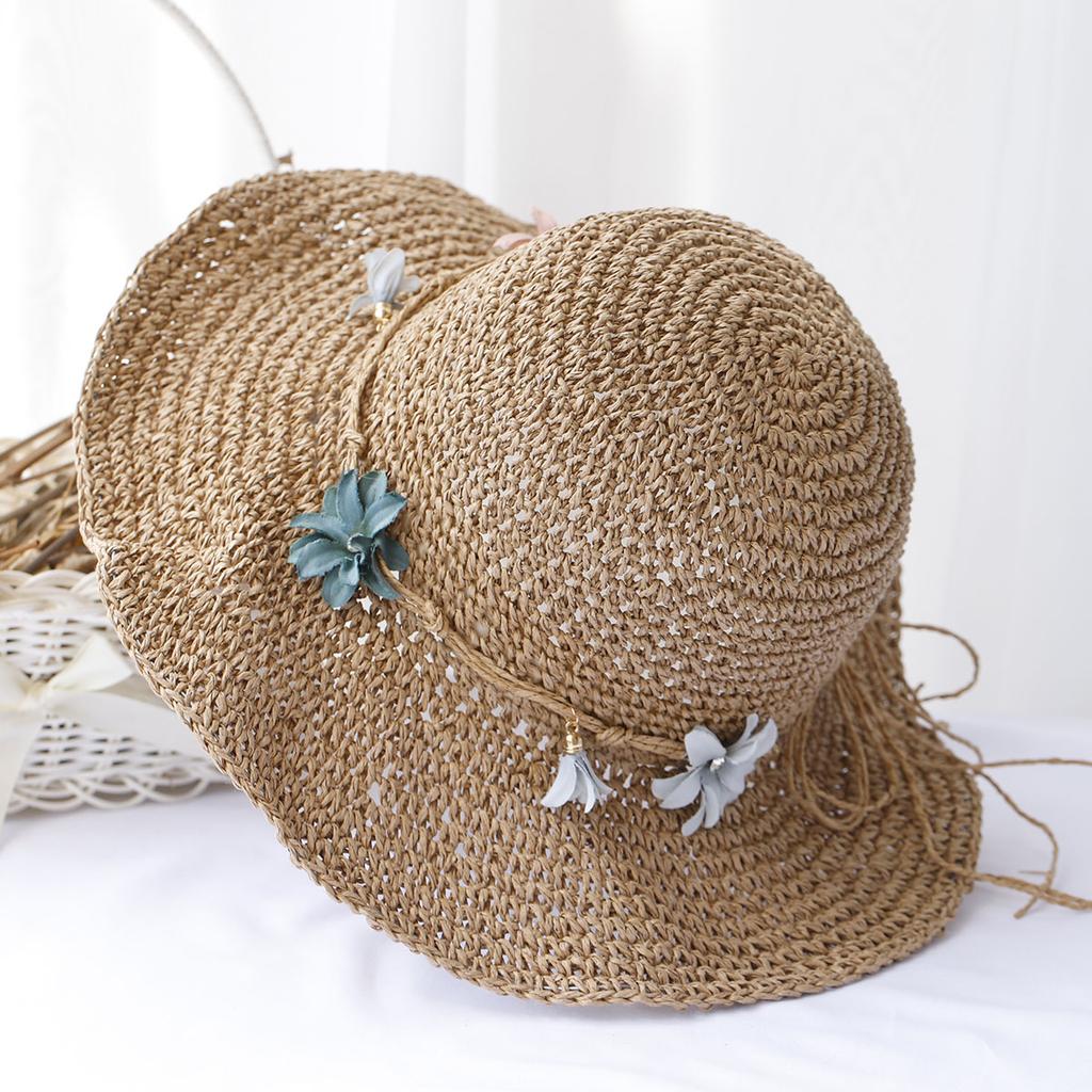 Солнечная шляпа цветочная мода Стиль панама Многоцветная Складная Солнечная Вязаная Крючком Шляпа Для Пляжа, Путешествий И Отпуска ручная работа соломенная шляпа