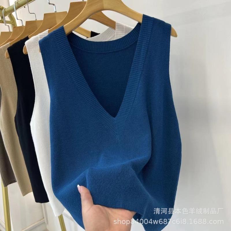 С глубоким V-образным вырезом Сладкий вязаный жилет Однотонный Осенний Новый Женский Вязаный