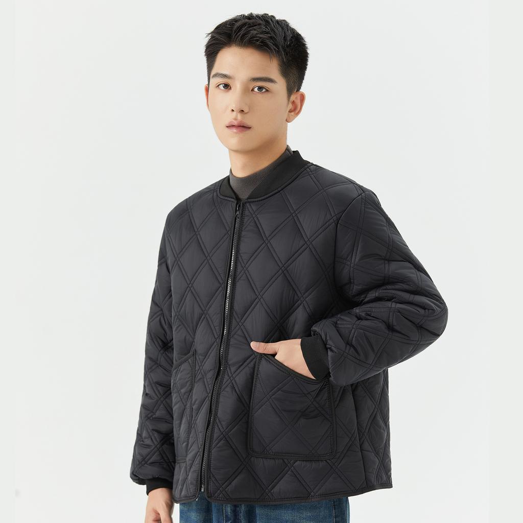 Men's Winter Warm Jacket With Pockets Outdoor Indoor Windproof Full Zip Padded Long Sleeve Coats for Men Thick Fleece Lined Quilted House Wear Jackets