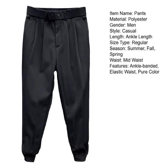 Характеристики: Эти брюки, предназначенные для мужчин, имеют эластичный пояс с застежкой-молнией на пуговицы для удобства ношения и плотной посадки.. Наличие боковых карманов и однотонные цвета делают их универсальным и стильным выбором для повседневных случаев.