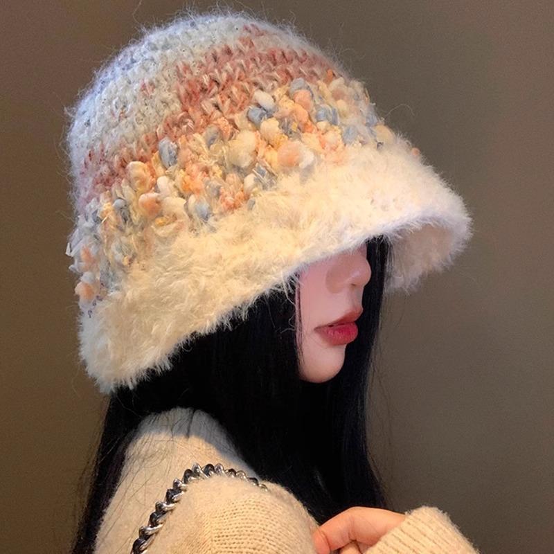 Японская плюшевая вязаная шапка-рыбачка для женщин на осень и зиму, в корейском стиле, маленькая шляпа-ведро, подчеркивающая лицо, теплая и непродуваемая, шерстяная шапка, модная