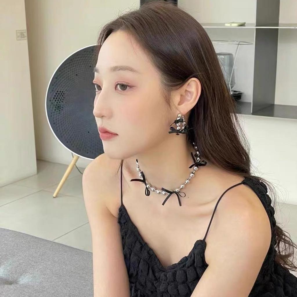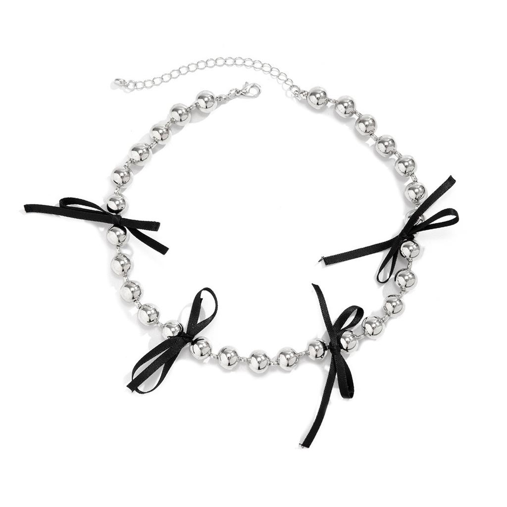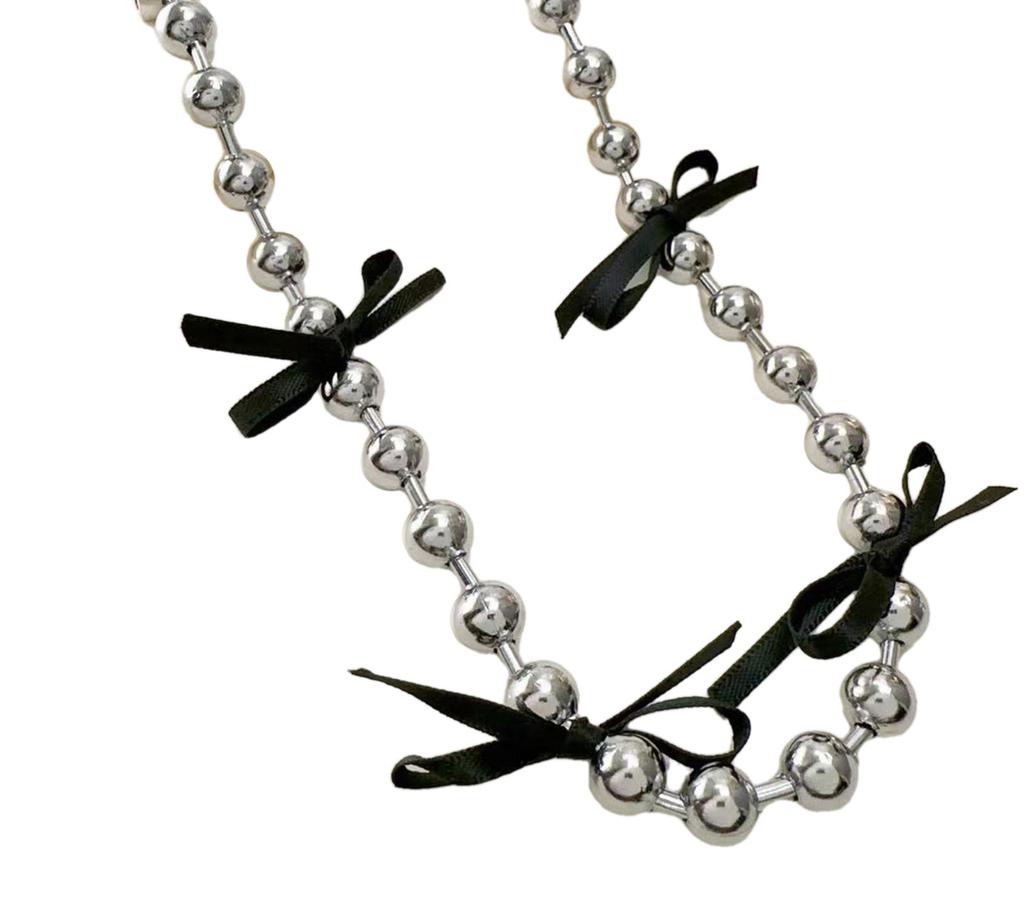 Элегантное и шикарное ожерелье с изящным акцентом в виде бантика. Элегантная стальная цепочка с бусинами. Украшение для модниц
