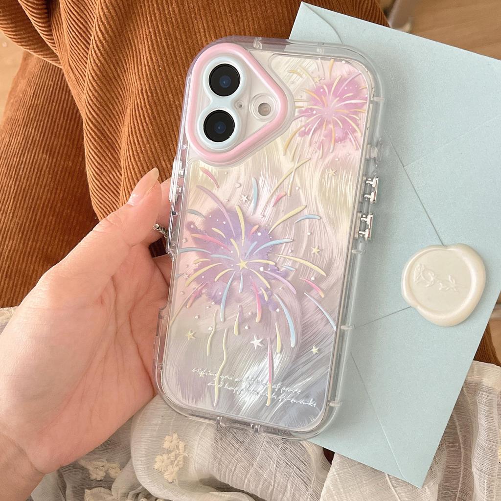Color Fireworks Protective Phone Case for Apple 11/12/15Pro/16ProMax/17 - Anti-Drop Feather Yarn Design
