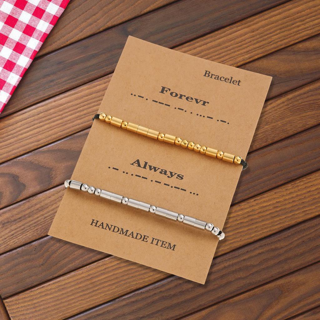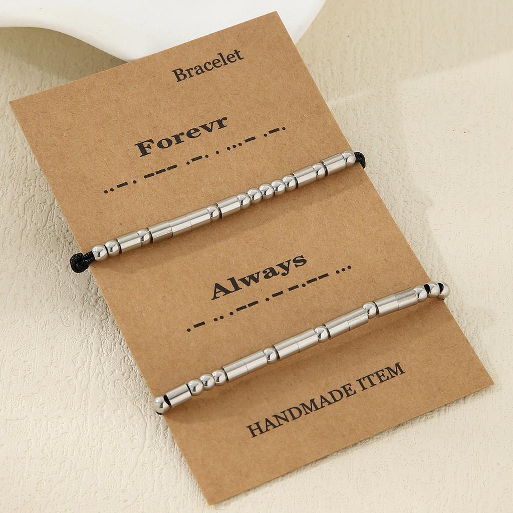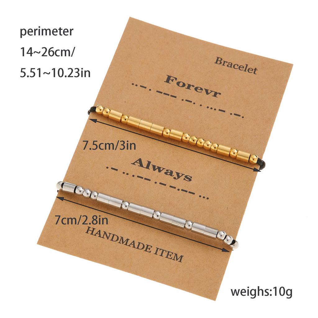Набор из 2 модных парных браслетов с кодом Морзе из нержавеющей стали с уникальным браслетом для молодых и стильных влюбленных