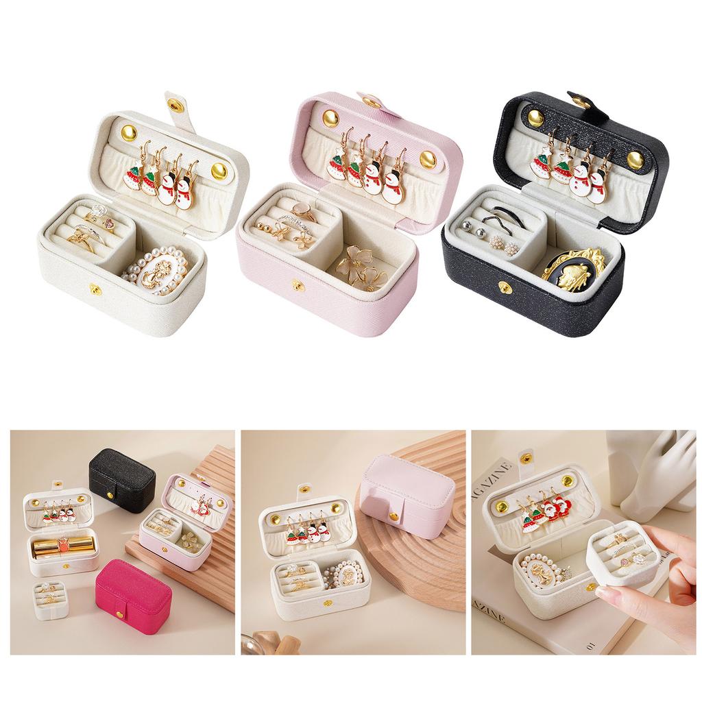Small Travel Jewellery Box Organiser for Rings Earrings Necklaces - PU Leather Velvet Jewelry Cases Gift Box for Women